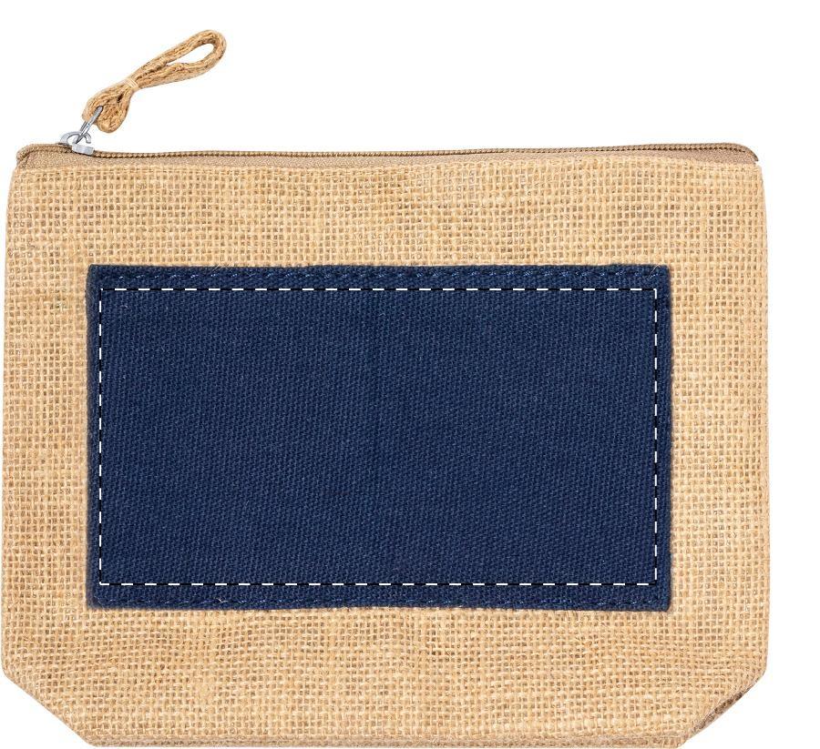 Reißverschluss-Kosmetiktasche aus laminierter Jute und Baumwolle.