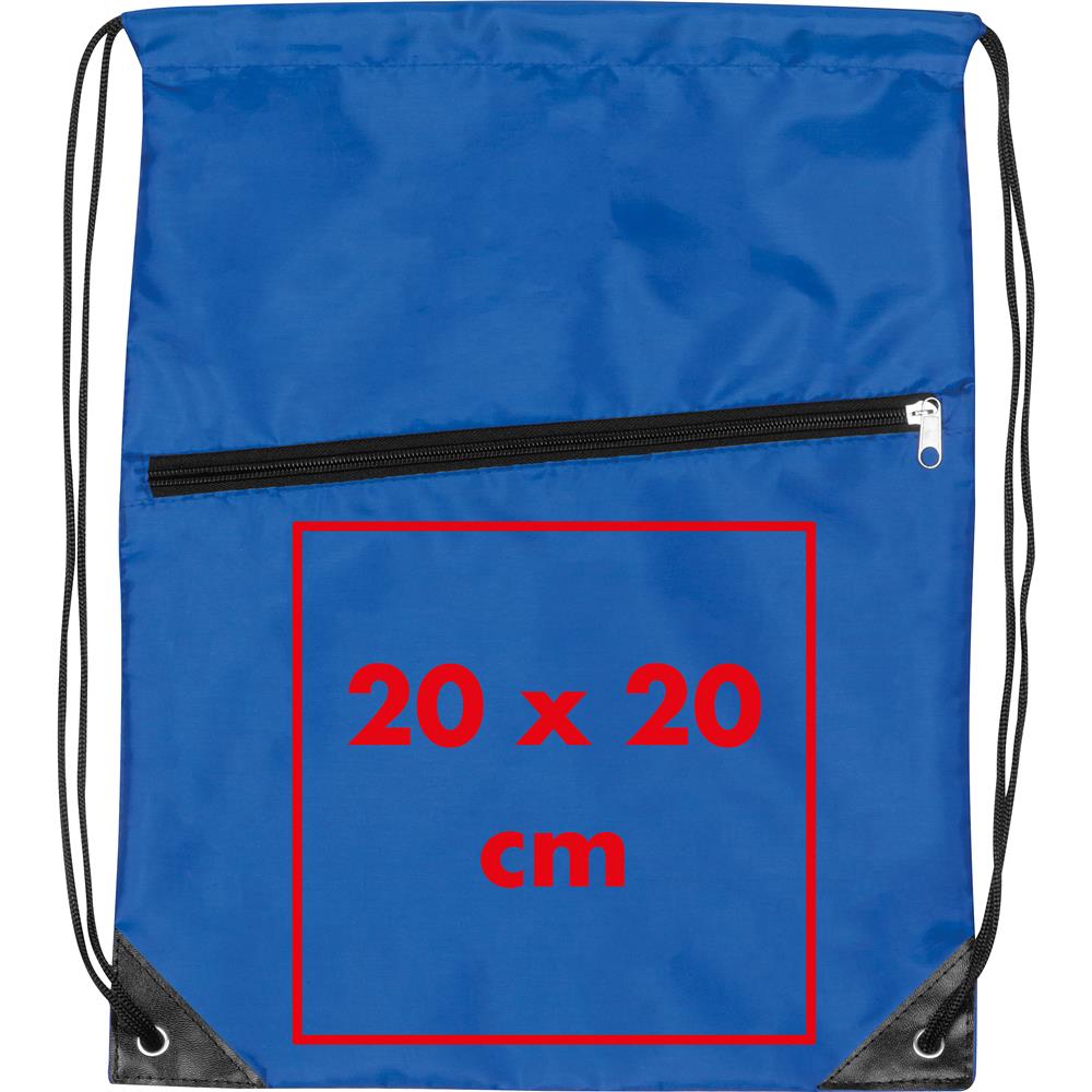 Die wasserabweisende RPET-Gymbag wurde aus recycelten Kunststoffen hergestellt. Integriert ist ein verschließbares Vorfach und zwei Trageriemen mit Kordelzug. Ihre Werbung wird auf eine Seite gedruckt.