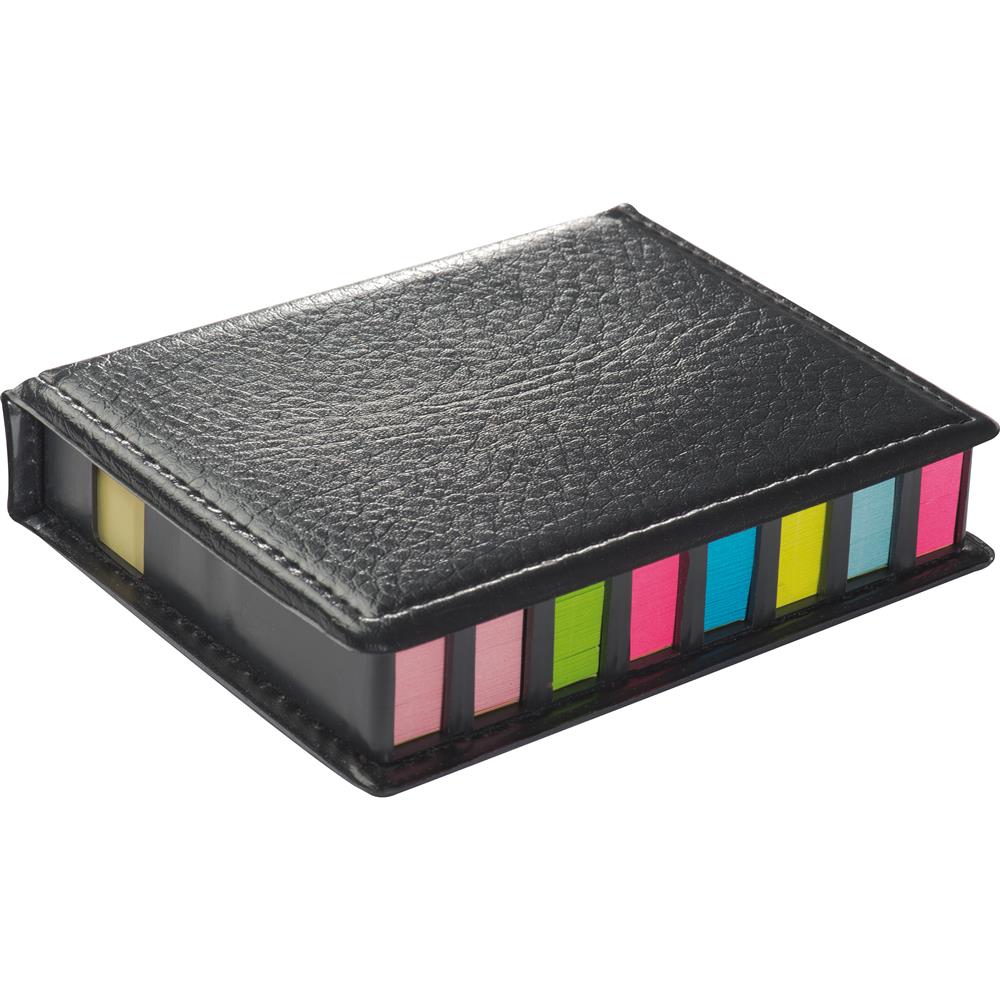 Praktisches Haftmarkerset mit je 200 gelben und blauen Haftnotizzetteln, sowie je 200 Haftmarkern in 6 verschiedenen Farben. Im Deckel befindet sich ein zusätzliches Fach, für z.B. Visitenkarten. Ihre Werbung drucken wir oben auf den Deckel.