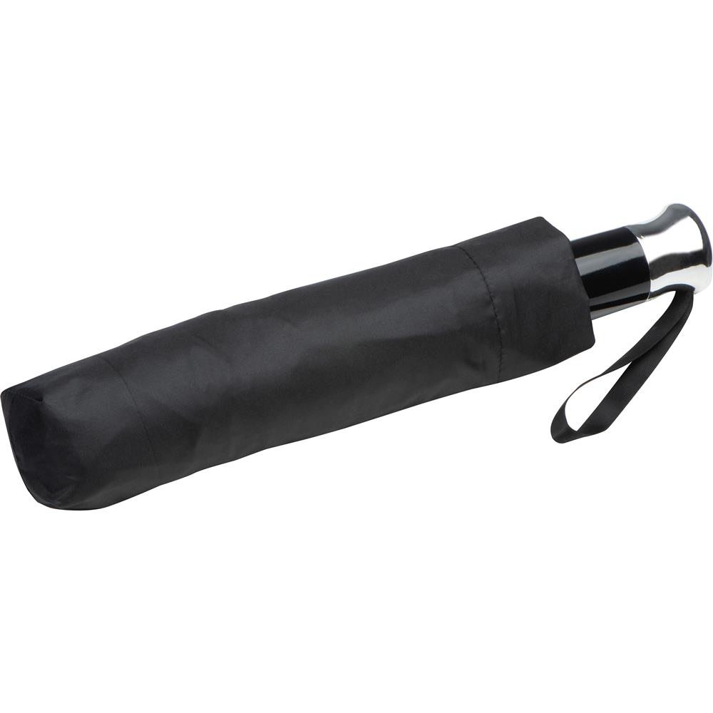 Hochwertiger Taschenschirm aus 190T Pongee mit schwarzem Fiberglass Gestänge, edlem Griff und passendem Etui. Automatische Öffnung bzw. Schließung auf Knopfdruck. Ihre Werbung drucken wir auf ein Segment.