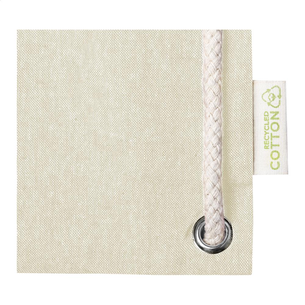Turnbeutel aus recycelter Baumwolle mit dicken geflochtenen Kordeln und langen Griffen. Auch verwenbar als Einkaufstasche. Material: 100% recycelte Baumwolle (140 g/m²).