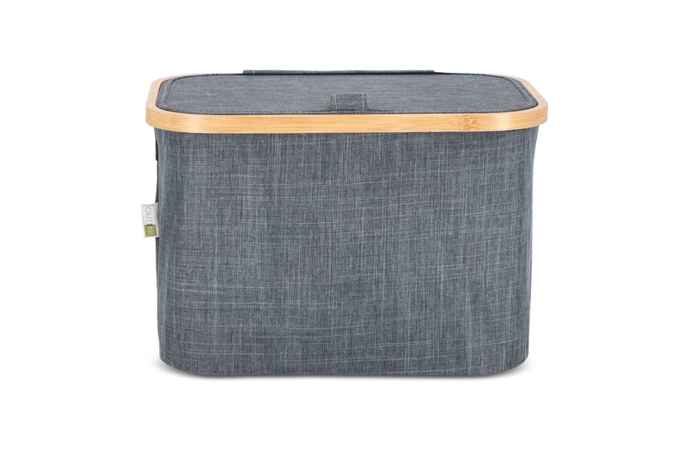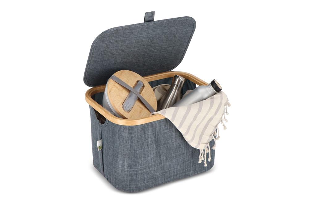 Dieser kompakte, faltbare Korb Sogne von InSideOut ist eine stilvolle und nachhaltige Aufbewahrungslösung, die aus recycelten Materialien und Bambus hergestellt wird. Das moderne Design passt perfekt in jedes Interieur und sorgt dafür, dass Sie jeden Raum aufgeräumt verlassen. Der Korb hat einen Deckel und ist sowohl faltbar als auch stapelbar, was ihn nicht nur funktional, sondern auch platzsparend macht. Jede Ecke des Korbs ist mit textilummantelten Stützen verstärkt, die sich einfach mit Klettverschluss unter dem Bambusrahmen befestigen lassen. Dank dieses cleveren Systems lässt sich der Korb schnell zusammen- und auseinanderfalten, so dass er leicht zu verstauen und ideal für den täglichen Gebrauch ist. Kurzum, der Sogne-Faltkorb vereint Nachhaltigkeit, Stil und Praktikabilität in einem... Auf dem Deckel ist Platz für einen Aufdruck, damit Ihr Logo immer sichtbar ist.