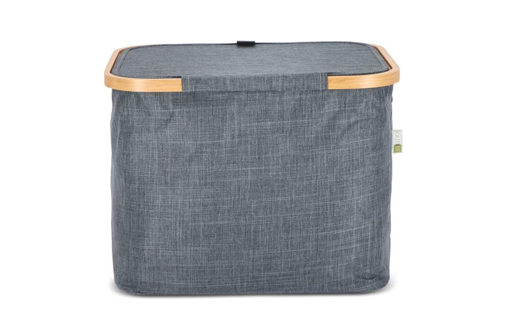Dieser faltbare Korb Sogne von InSideOut ist eine stilvolle und nachhaltige Aufbewahrungslösung aus recycelten Materialien und Bambus. Das moderne Design passt perfekt in jedes Interieur und sorgt dafür, dass jeder Raum ordentlich und sauber bleibt. Der Korb hat einen Deckel und ist sowohl faltbar als auch stapelbar, was ihn funktional und platzsparend macht. Jede Ecke des Korbs ist mit textilummantelten Stützen verstärkt, die einfach unter dem Bambusrahmen mit Klettverschluss befestigt werden können. Dank dieses cleveren Systems kann der Korb schnell gefaltet und entfaltet werden, was ihn einfach zu lagern und ideal für den täglichen Gebrauch macht. Kurz gesagt, der faltbare Korb Sogne vereint Nachhaltigkeit, Stil und Praktikabilität in einem. Es gibt Platz für einen Druck auf dem Deckel, sodass Ihr Logo immer sichtbar ist.