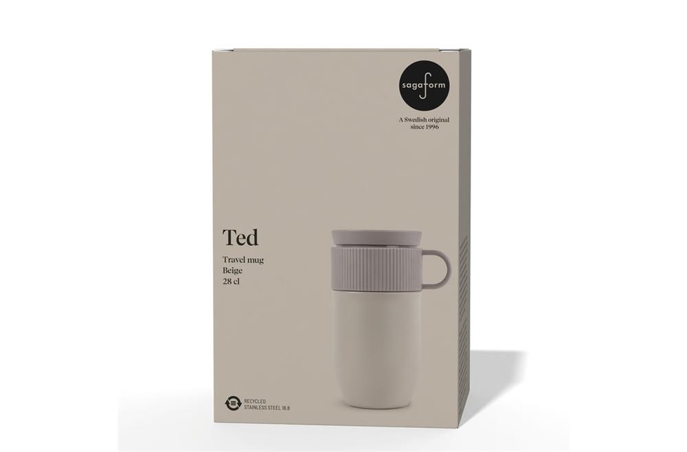 Der Ted Mug von Sagaform ist ein stilvoller und funktioneller Reisebecher, ideal für alle, die immer ein heißes oder kaltes Getränk zur Hand haben möchten. Der aus recyceltem Edelstahl gefertigte Becher ist in trendigen Farben und auffälligen Farbkombinationen, darunter Gold und Silber, erhältlich. Die doppelwandige, vakuumisolierte Konstruktion mit einer dünnen Kupferschicht sorgt dafür, dass Ihr Getränk 4 Stunden lang heiß oder 8 Stunden lang kalt bleibt. Mit einem praktischen Griff, einem cleveren Druckknopfdeckel und einem 360°-Trinkgefühl fühlt es sich an, als würden Sie aus einem normalen Becher trinken. Ted ist spülmaschinenfest und wird in einer stilvollen Geschenkbox präsentiert. Er ist sowohl nachhaltig als auch elegant und perfekt für unterwegs. Entworfen von Studio Sagaform.