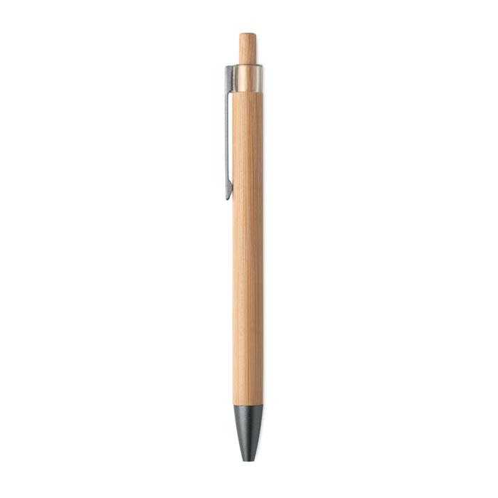 Druckkugelschreiber mit Schaft aus Bambus und Metallclip. Blaue Tinte.