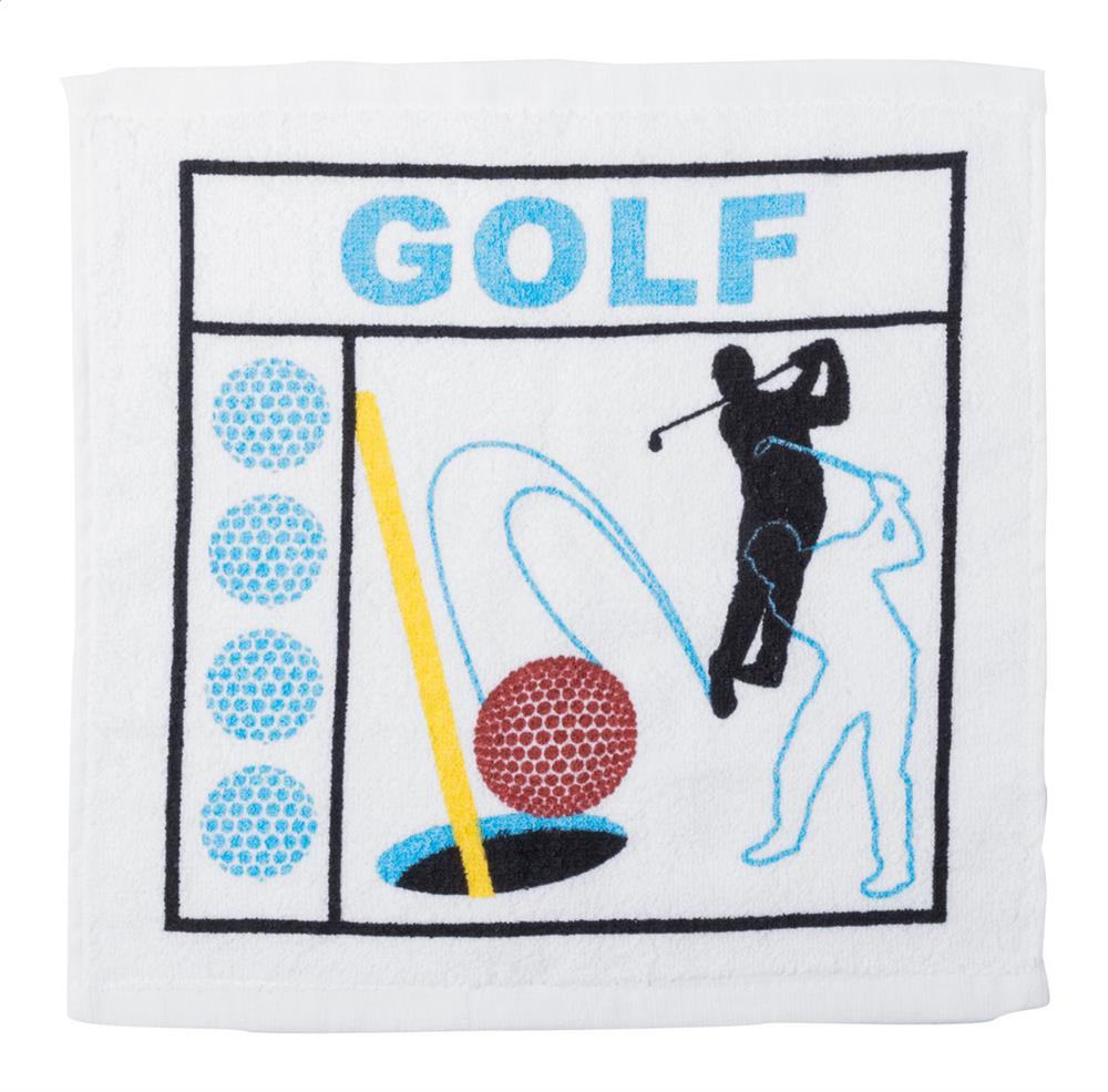 Komprimiertes Baumwollhandtuch mit Sportdekoration.