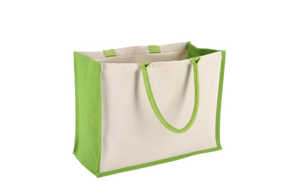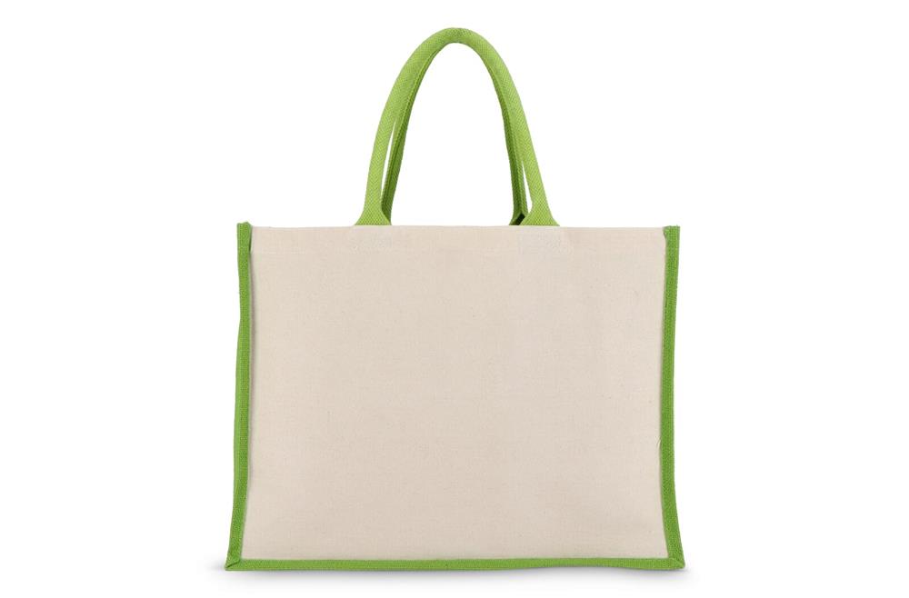 Elegante Tasche mit Vorder- und Rückwand aus Baumwoll-Canvas und Seiten und Boden aus Jute - alles 320 g/m². Die Baumwollgriffe und Seitenwände in Akzentfarben sorgen für zusätzlichen optischen Reiz. Oeko-Tex®-zertifiziert. Ideal für den Einzelhandel, Veranstaltungen oder den täglichen Gebrauch.