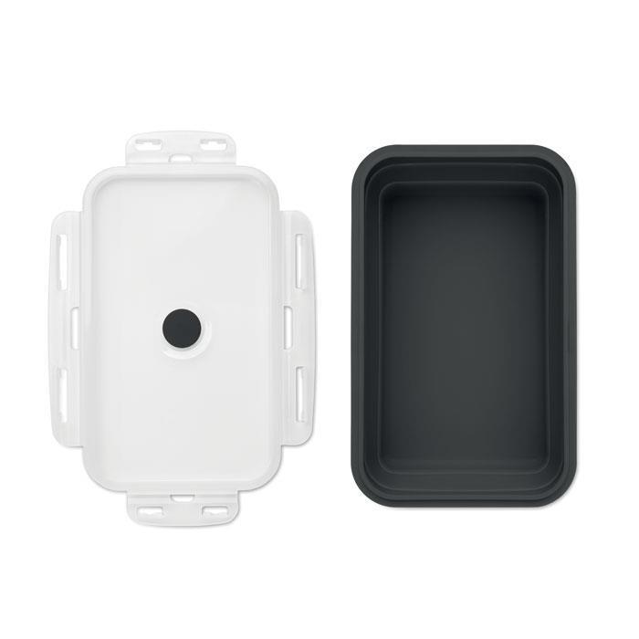 Faltbare Lunchbox aus Silikon mit PP-Deckel und Silikonventil. Füllmenge: 1200 ml.