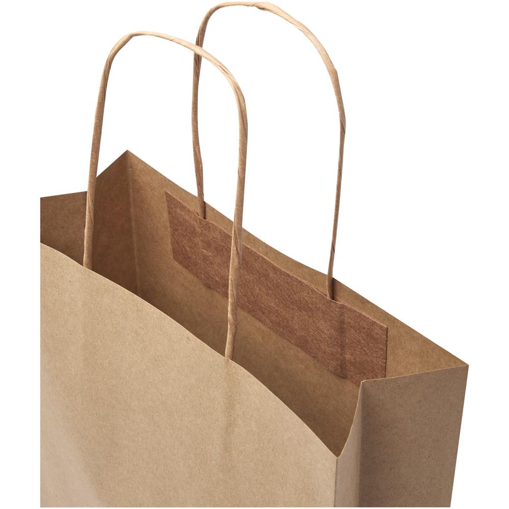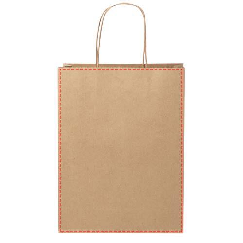 Mittlere 120 g/m2 Kraftpapiertüte (24 × 9 × 32 cm) mit gedrehten Papiergriffen. Die personalisierbare Vorder- und Rückseite bietet viel Platz für ein Logo oder ein anderes Design und ist somit ein hervorragendes Marketinginstrument für Unternehmen. Hergestellt in Europa und zu 100 % recycelbar. Diese Tragetasche ist eine nachhaltige Wahl für umweltbewusste Unternehmen und Personen, die eine nachhaltige Verpackungslösung suchen.