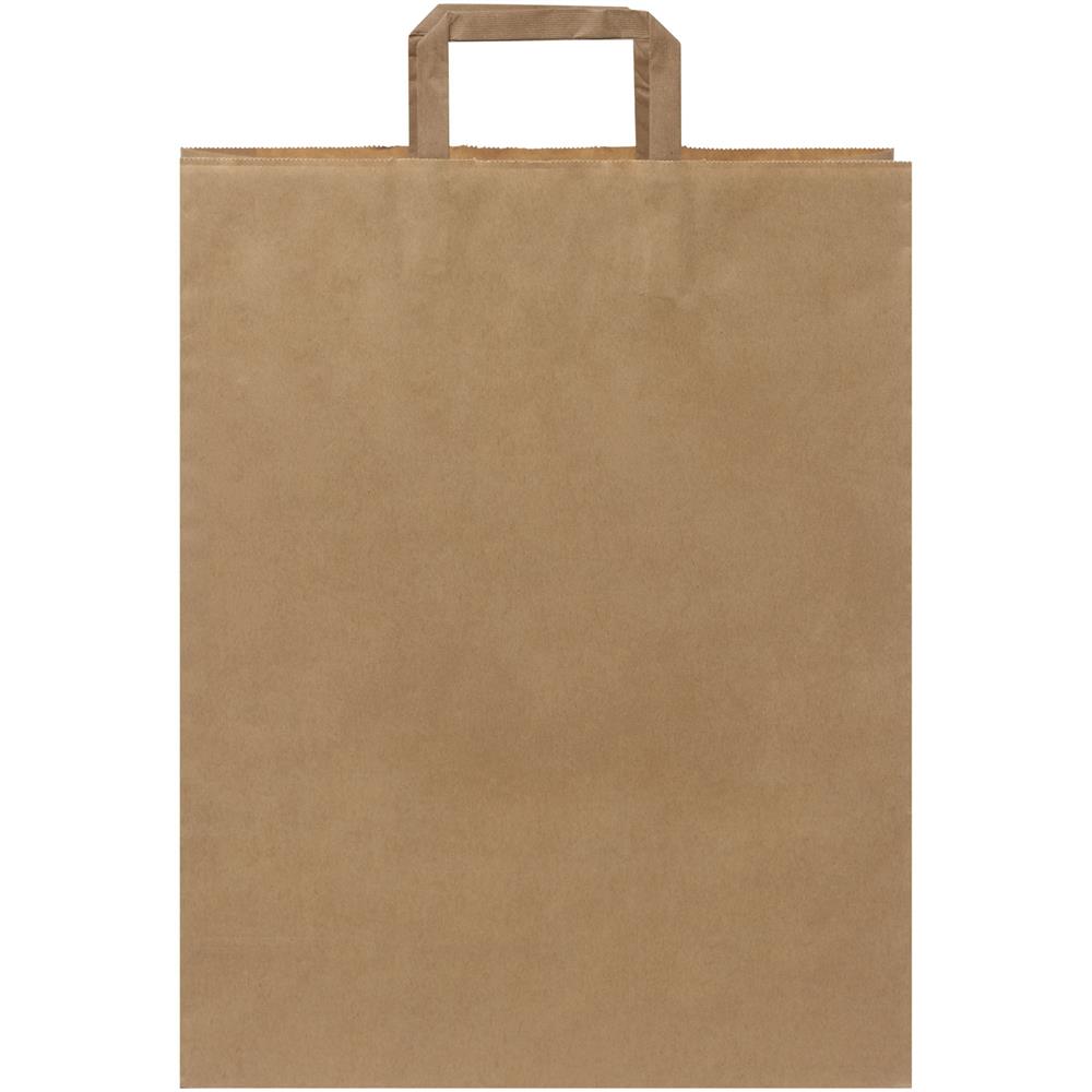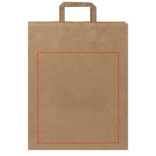 Große Kraftpapiertasche mit flachen Griffen. Hergestellt in Europa aus Papier (weiß 90 g/m², braun 80 g/²) aus verantwortungsvollen Quellen, ist sie eine nachhaltige und langlebige Verpackungslösung mit ausreichend Platz für eine Vielzahl von Artikeln. Das natürliche und rustikale Aussehen des Kraftpapiers verleiht jedem Anlass eine elegante Note. Diese Tasche ist ideal für Einkäufe, Geschenke oder Veranstaltungen und eine umweltfreundliche Alternative zu Kunststofftaschen. Nutzen Sie unsere praktischen und umweltfreundlichen Kraftpapiertaschen. Größe 32 × 12 × 40 cm.