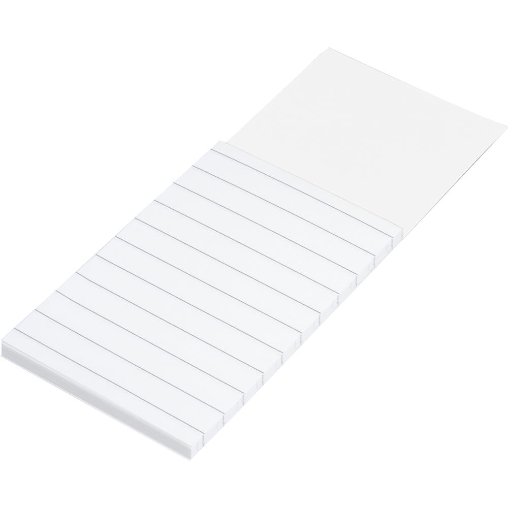 Praktischer Kühlschrank-Magnet mit integriertem Schreibblock mit 40 linierten Seiten für Einkaufszettel, Termine etc. Ihre Werbung drucken wir auf den Magneten.