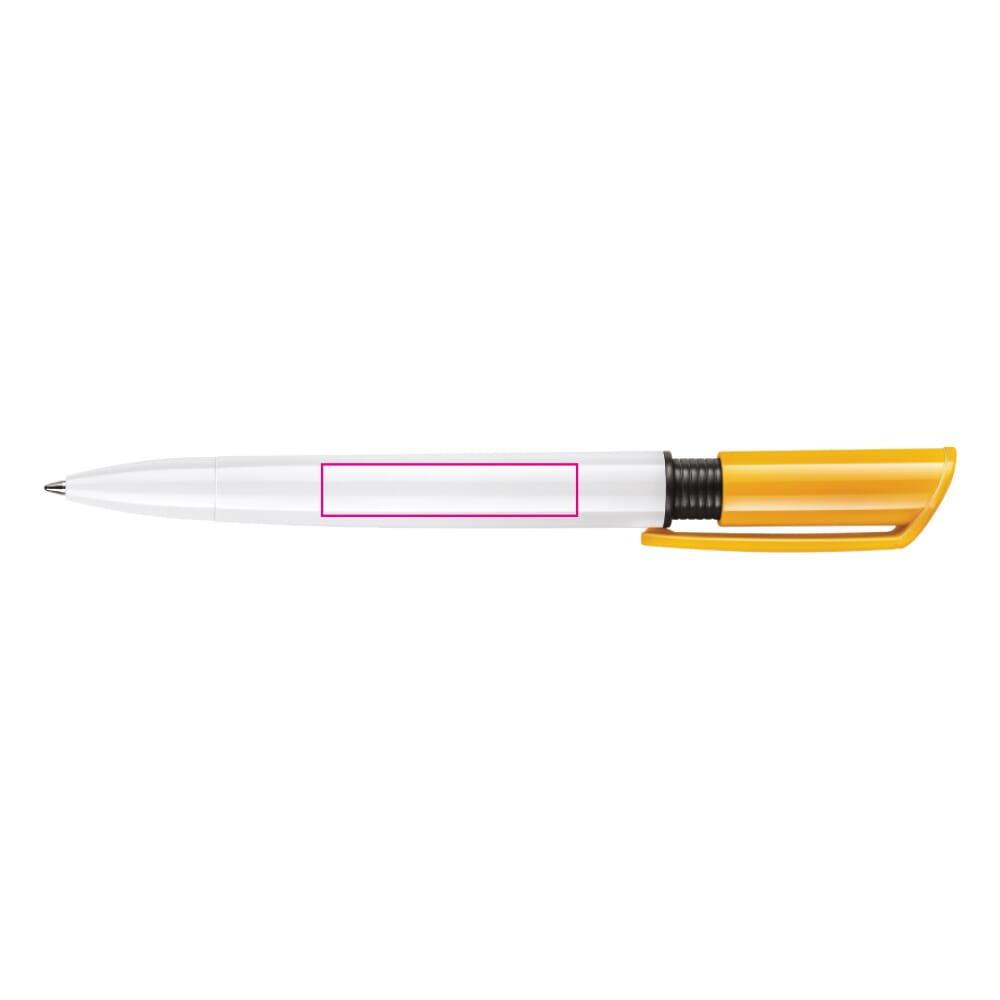 Der S40 Colour Kugelschreiber ist aufgrund des farbig bedruckbaren Clips, der dem Modell Stil und Charakter verleiht, ein beliebter Stift. Der weiße Schaft kann einfach mit einem Logodruck individualisiert werden. Druckkugelschreiber ausgestattet mit einer blau schreibenden X20-Refill-Mine. Der Hardcolour-Kugelschreiber besteht aus ABS und wird in Europa hergestellt. Ab einer Abnahmemenge von 5.000 Stück sind eigene Farbkombinationen möglich.