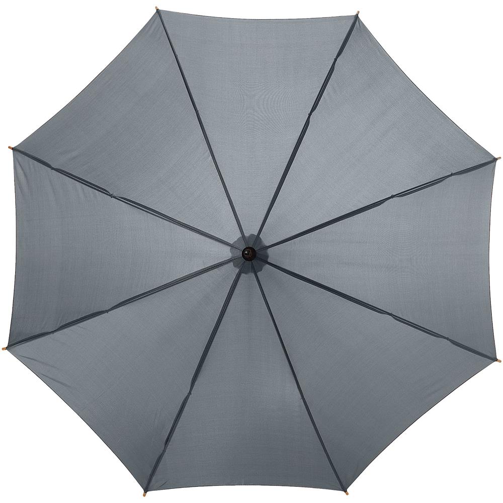 Wenn Sie auf der Suche nach einem stilvollen Regenschirm sind, ist Kyle die richtige Wahl. Das automatische System ermöglicht es, den Schirm mit einem Klick zu öffnen. Außerdem besteht der Schirm aus Metallrippen und einem eleganten Holzschaft und -griff. Kyle ist in verschiedenen Farben erhältlich und bietet zahlreiche Druckmöglichkeiten.