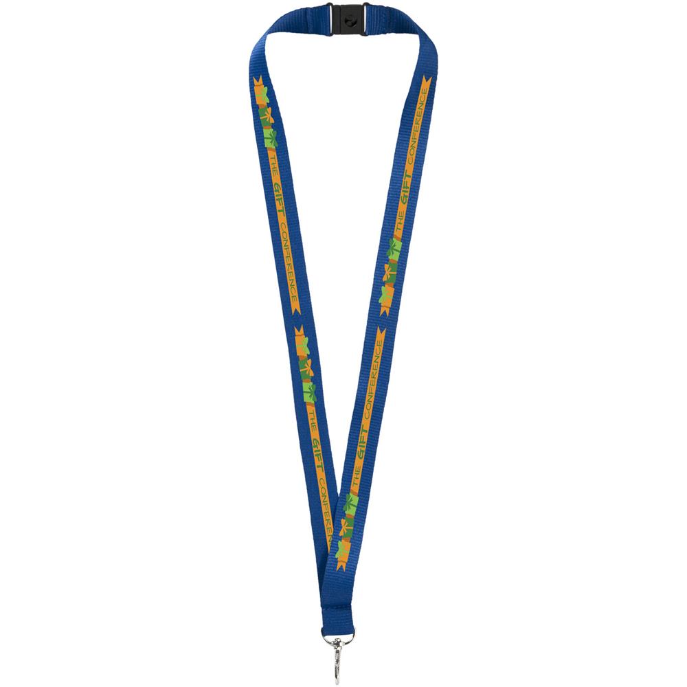 Lanyard für Namensschilder, Ausweise oder Schlüssel. Abreissverschluss verhindert die Erstickungsgefahr. Setup Kosten für die zweite Position entfallen, wenn auf beiden Seiten eine Werbeanbringung mit dem selben Logo erfolgt. Druckkosten pro Position fallen dennoch an.