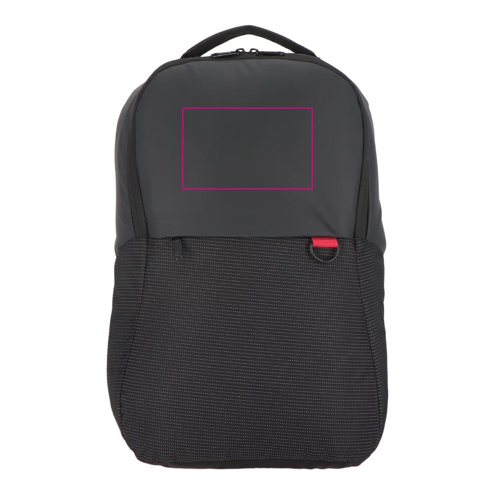 Dieser Rucksack ist aus luxuriösem Jacquard und PU-beschichtetem 600D-Material gefertigt. Er verfügt über ein verdecktes Reißverschlussfach an der Vorderseite, einen Griff an der Oberseite, gepolsterte und verstellbare Schultergurte und ein Sicherheitsfach auf der Rückseite für Wertsachen. Sie verfügt über einen Riemen zur Befestigung an einem Trolley-Griff, einen gepolsterten Rücken für mehr Komfort und einen doppelten Zugang für den Laptop entweder über die Hauptöffnung oder eine verdeckte Öffnung auf der Rückseite. Im Inneren befinden sich ein Netzfach, ein gepolstertes Laptop-Fach und ein gepolstertes Tablet-Fach, die alle mit 210D-Gewebe ausgekleidet sind.