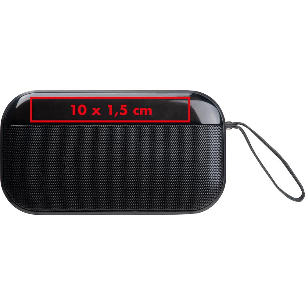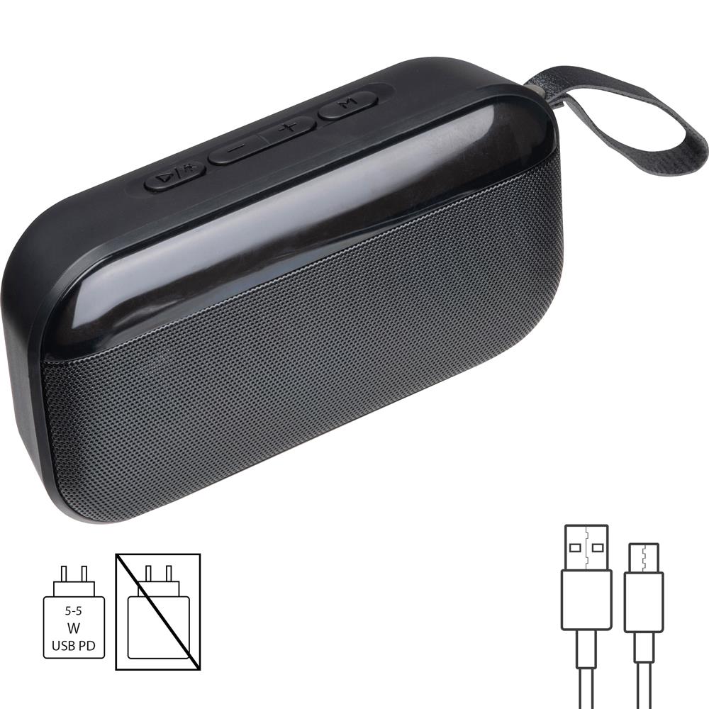 Bluetooth-Lautsprecher (Version 5.4) mit 600mAh Akkuleistung (5V) mit RGB-LED-Licht und Ladekabel. USB/Type-C Anschluss, SD Kartenschlitz und kleiner Trageschlaufe. Ihre Werbung wird auf die Rückseite gedruckt.