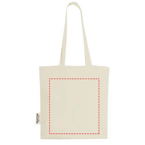 Die Tragetasche Madras aus 100 % GRS-zertifizierter recycelter Baumwolle ist die perfekte Tasche zum Verschenken bei Veranstaltungen, Konferenzen oder als Einkaufstasche für kleine Einkäufe. Die Baumwolldichte von 140 g/m² Baumwolle macht die Tasche robust, langlebig und geeignet, um schwere Gegenstände zu transportieren. Mit einer Tragegriffhöhe von 30cm (Tragegrifflänge 60cm) lässt sich diese Tasche gut tragen. Die für diese Tragetasche verfügbaren Druckverfahren sind ebenfalls GRS-zertifiziert, so dass die gesamte Lieferkette transparent und zertifiziert ist. Hergestellt in Indien. Beständigkeit bis zu 5kg.