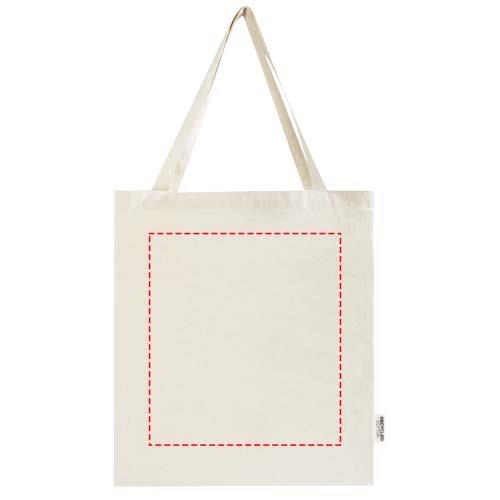 Die Madras Tragetasche mit Zwickel aus 100 % GRS-zertifizierter Recyclingbaumwolle ist die ideale Tasche als Giveaway bei Veranstaltungen, Konferenzen oder als Einkaufstasche für kleine Besorgungen. Die Baumwolldichte von 140 g/m² Baumwolle macht die Tasche robust, langlebig und geeignet, um schwere Gegenstände zu transportieren. Mit einer Tragegriffhöhe von 30cm (Tragegrifflänge 60cm) lässt sich diese Tasche gut tragen. Die für diese Tragetasche verfügbaren Druckverfahren sind ebenfalls zertifiziert, sodass die gesamte Lieferkette transparent und zertifiziert ist. Hergestellt in Indien. Beständigkeit bis zu 5 kg.
