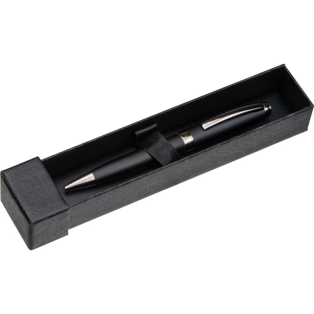 Mark Twain Kugelschreiber aus Metall mit mattem Schaft, Applikationen aus Gun-Metal und einer Parker-Mine aus Metall. Ihre Werbung wird auf den Kugelschreiber graviert.