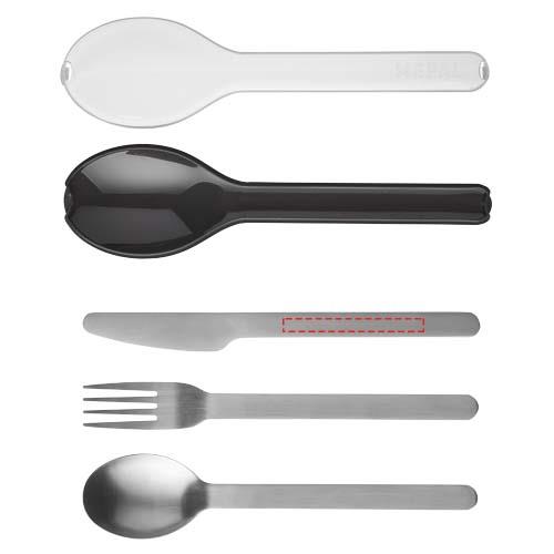 Diese stilvolle und praktische Ellipse Besteckset enthält ein Messer, eine Gabel und einen Löffel aus Edelstahl. Das Besteck wird in einem kompakten Kunststoffhalter aufbewahrt. Spülmaschinenfest.