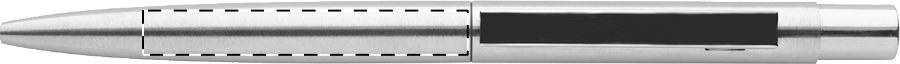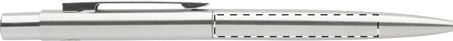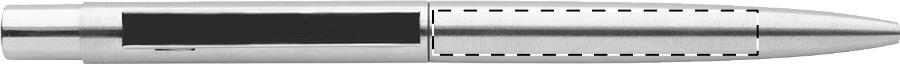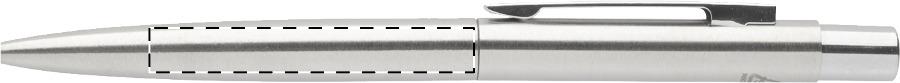 Kugelschreiber aus recyceltem Edelstahl mit Chromdetails, blauschreibend.