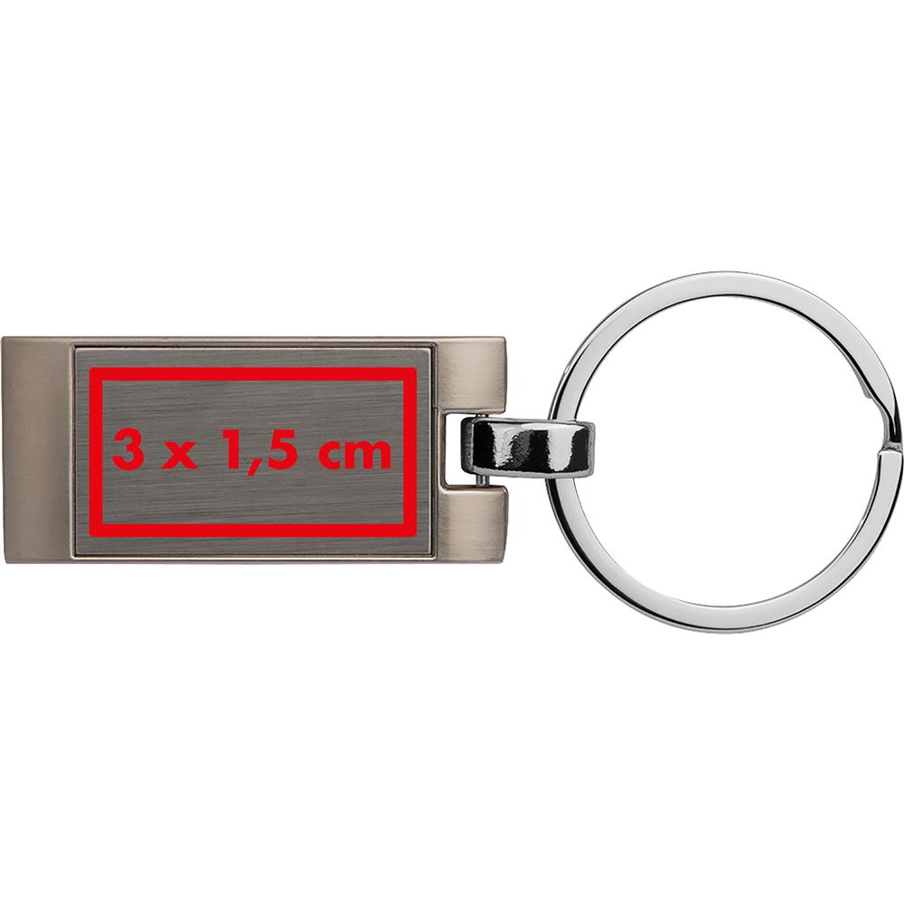 Metall Schlüsselanhänger rechteckig mit gewellter Rückseite. Das Innenteil ist mattgebürstet und kann mittels Lasergravur mit Ihrer Werbung versehen werden.