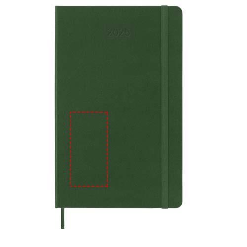 Der von Januar bis Dezember 2026 datierte Moleskine Hardcover Wochenplaner für 12 Monate zeigt die ganze Woche auf einen Blick, bietet aber auch Jahres- und Monatsübersichtsseiten für einen breiteren Jahresüberblick, gefolgt von Seiten für Reiseplanung, Ideen und Ziele. Auf der einen Seite sind die Wochentage dargestellt, gegenüber befindet sich eine linierte Seite, auf der Aufgaben und Notizen eingetragen werden können. Er enthält elfenbeinfarbenes, säurefreies Papier, einen schwarzen, elastischen Verschluss, ein Seitenband, eine farblich abgestimmte, erweiterbare Innentasche und Aufkleber zur persönlichen Gestaltung sowie Jahresaufkleber für den Buchrücken.