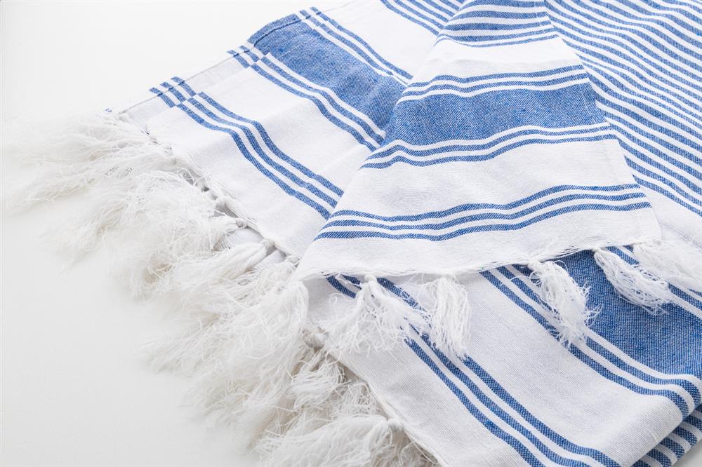 Zweifarbig gestreiftes Pareo Strandtuch aus 70% Baumwolle und 30% Polyester, 210 g/m²).