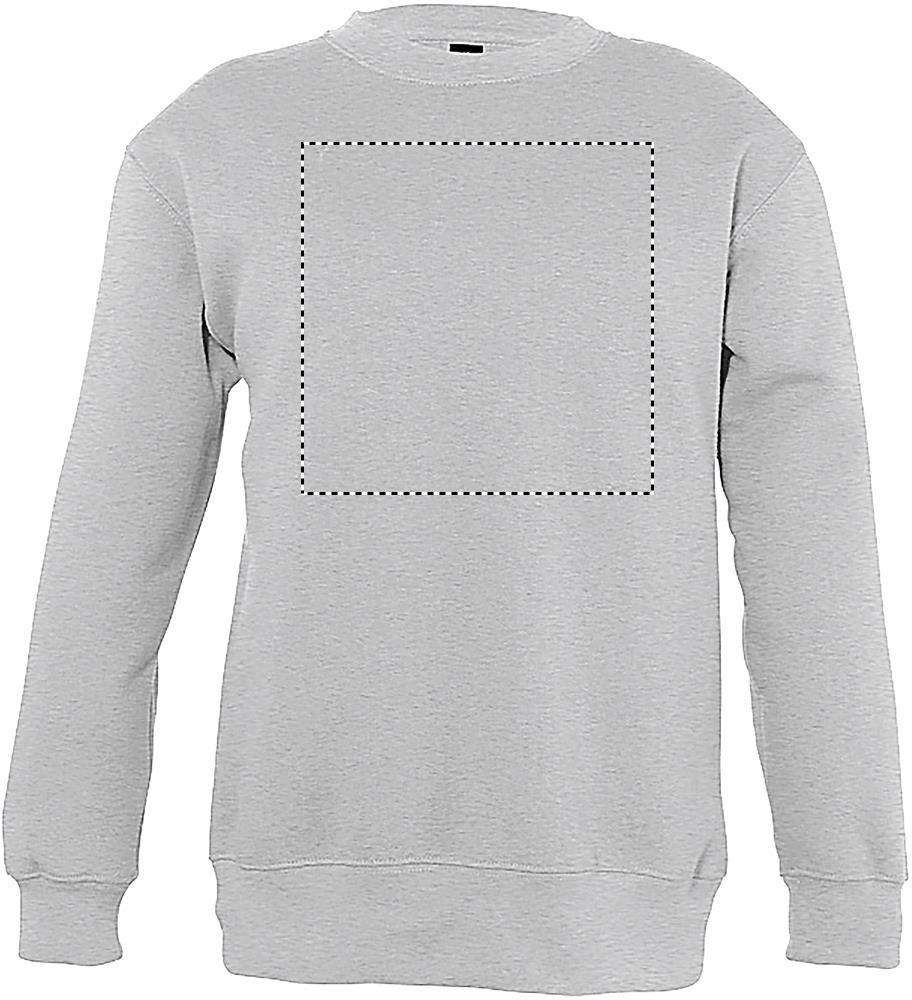 SOL'S NEW SUPREME Kinder-Sweatshirt. Rippkragen und -bündchen mit Elastan, Nackenband, Seitennähte, Set-In-Sleeves. Material: 280g /m² mit angerauter Innenseite aus 50% Baumwolle - 50% Polyester. Größen: 4 Jahre: 96-104cm (L), 6 Jahre: 106-116cm (XL), 8 Jahre: 118-128cm (XXL), 10 Jahre: 130-140cm (3XL), 12 Jahre: 142-152cm (4XL).