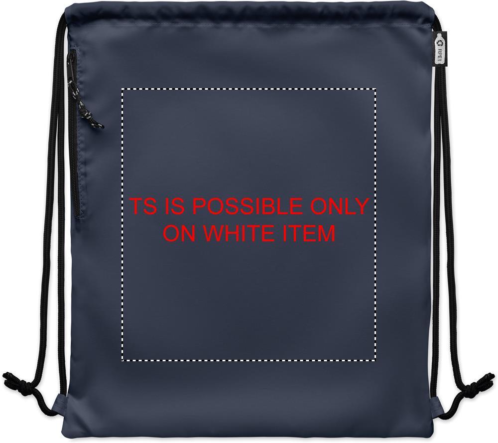 Großer Beutel mit Kordelzug. Seitliche Reißverschlusstasche. 300D RPET-Polyester