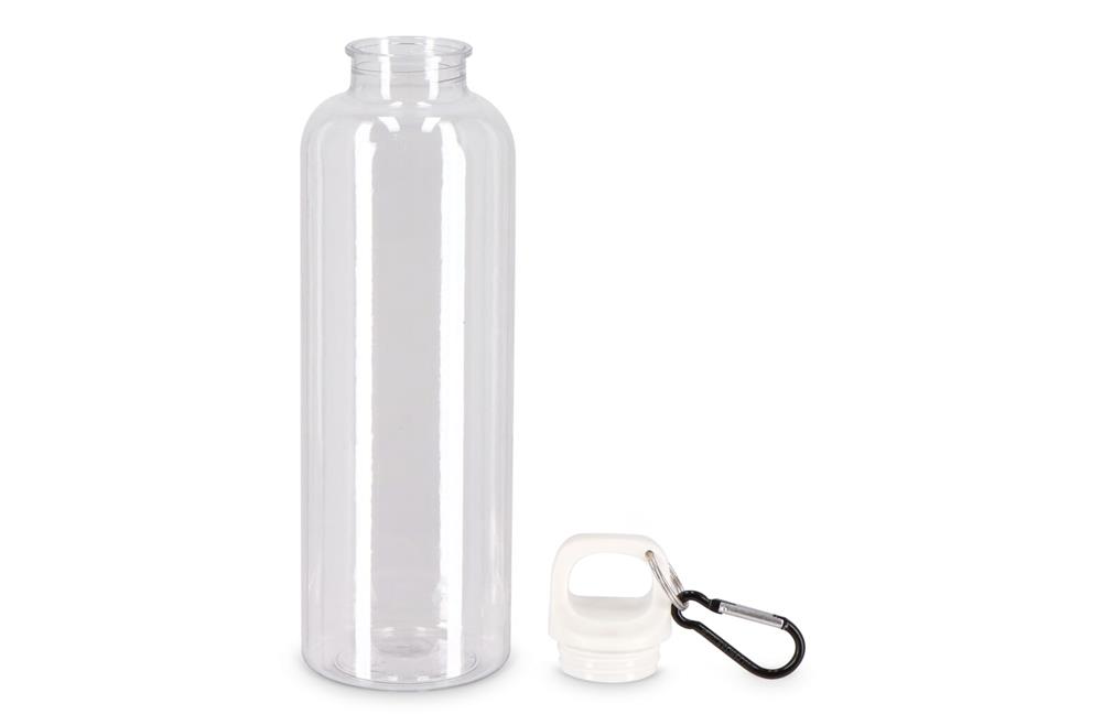 Mit dieser 750-ml-Wasserflasche aus R-PET mit transparentem Finish bleiben Sie stilvoll und nachhaltig hydriert. Ausgestattet mit einem praktischen Karabiner, ist es perfekt für die Befestigung an Rucksäcken, Handtaschen oder Sporttaschen. Erhältlich in einer Reihe von satten Trend- und Werbefarben.