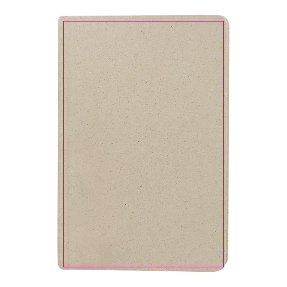 Dieses nachhaltige A5-Notizbuch hat einen Einband aus Grasfragmentpapier. Es enthält 80 Blatt FSC 70g/m² liniertes Papier, einen Gummibandverschluss und ein Lesezeichen mit Band.