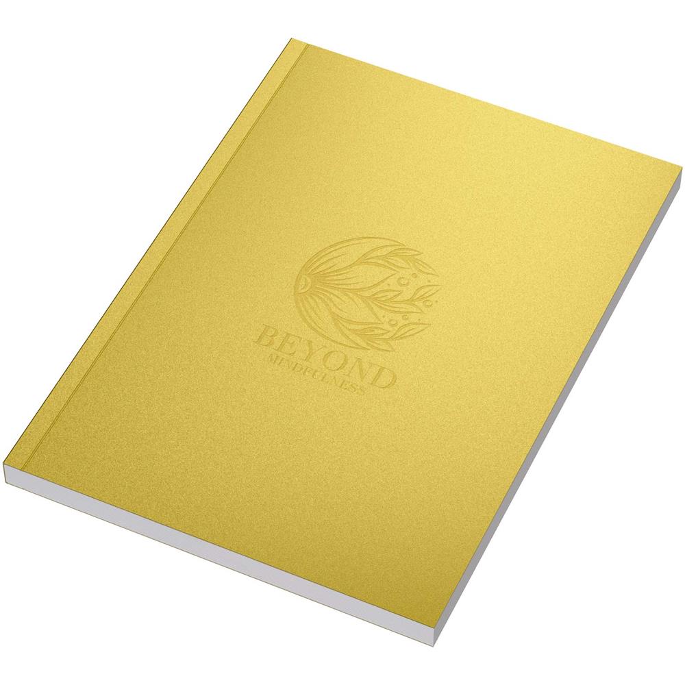 Das Novella Austen A5 Notizbuch mit Metallic-Softcover ist dank seiner Vielseitigkeit ein fantastisches Schreibwaren-Geschenk. Das Notizbuch enthält 80 g/m² Blatt. Die Blätter sind standardmäßig einfarbig, können aber auch mit einem Design Ihrer Wahl versehen werden, z. B. liniert, kariert oder Ihrem eigenen Design. Der metallicfarbene Einband besteht aus 300 g/m² Karton und ist vollflächig (Vorderseite, Rückseite, Rücken) vierfarbig bedruckbar. Hergestellt in UK.
