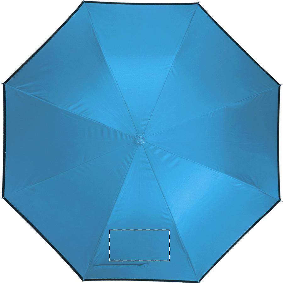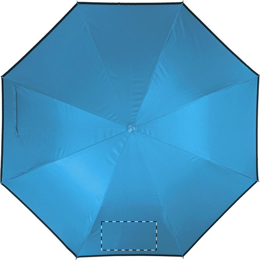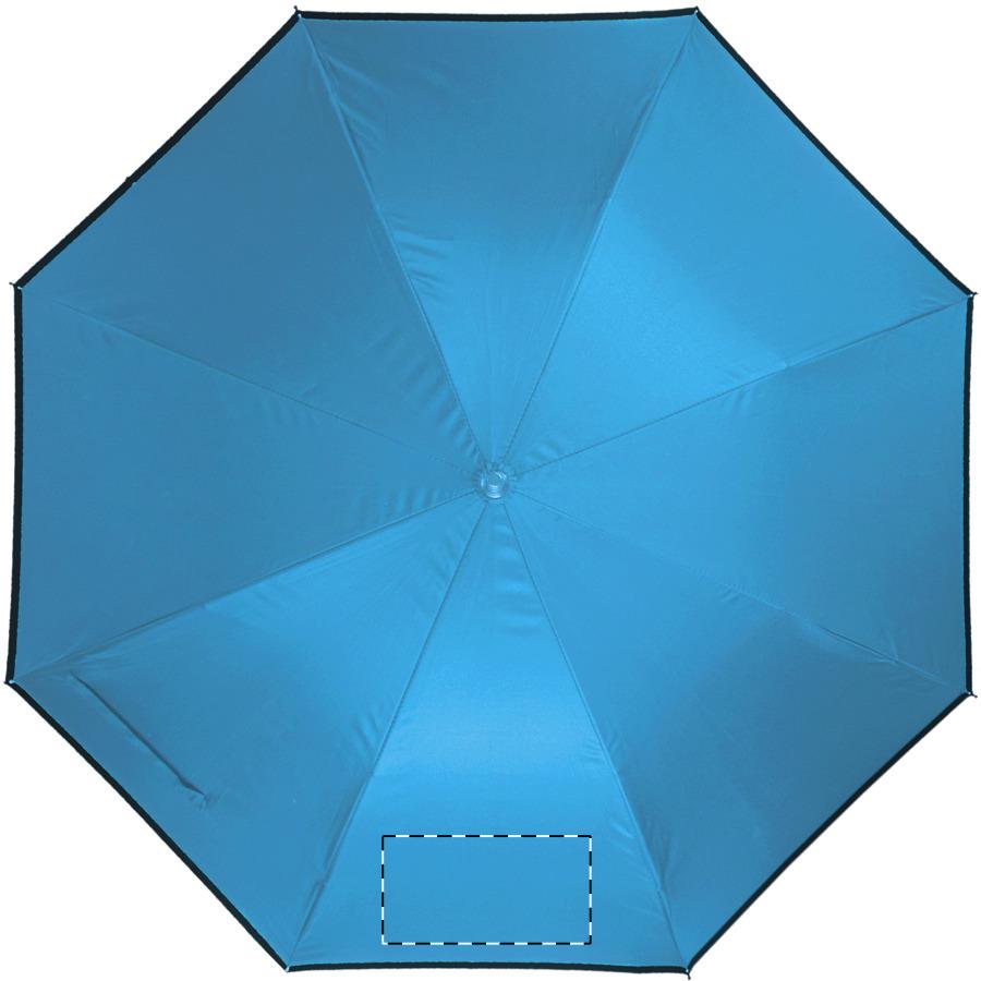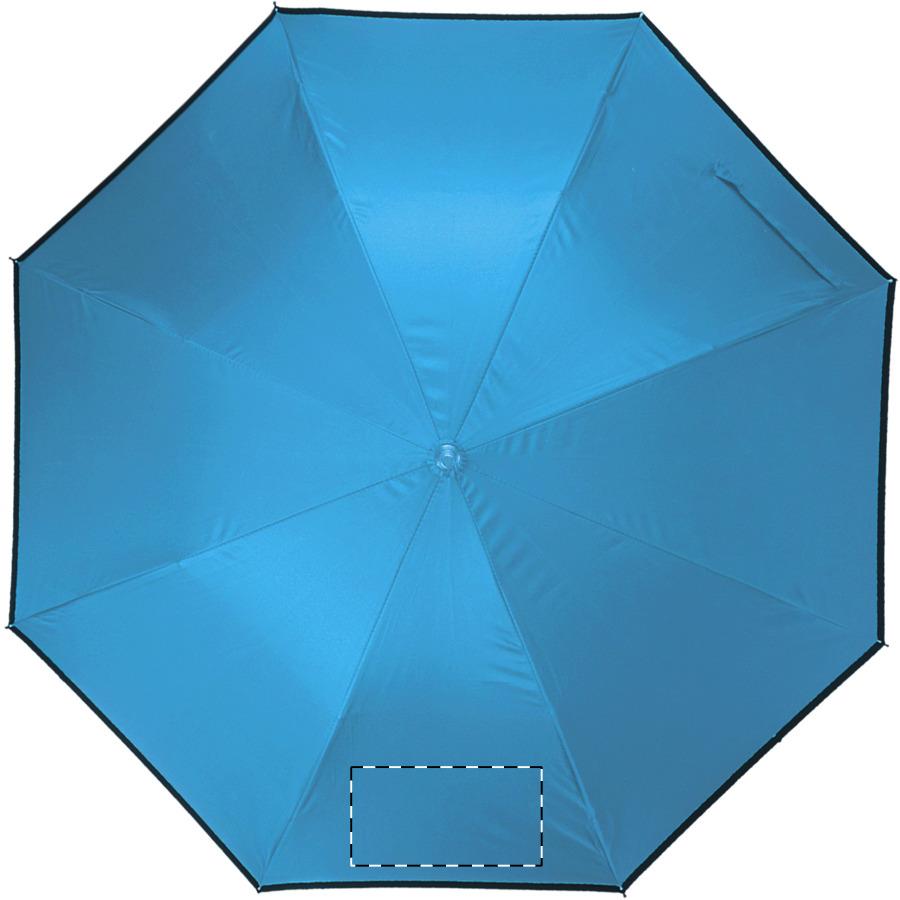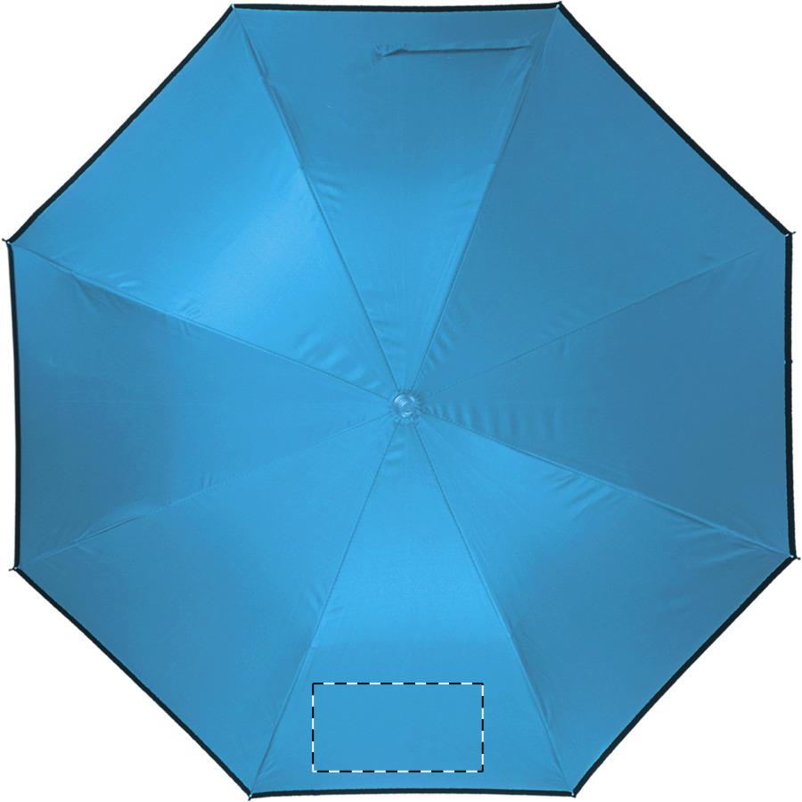 Vollautomatischer Windproof-Taschenschirm mit 8 Segmenten. Metallstock, Metall/Fiberglas-Speichen und farblich abgestimmtem Etui. Bespannung: 190T Polyester-Pongee.