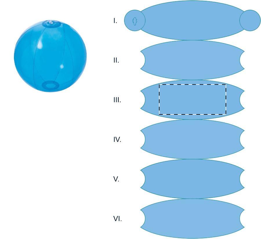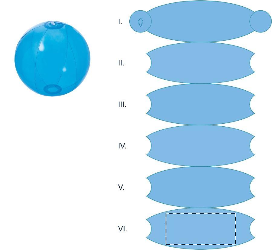 Transparenter Strandball mit 6 Segmenten, Material: PVC. Durchmesser ohne Luft: 370 mm.