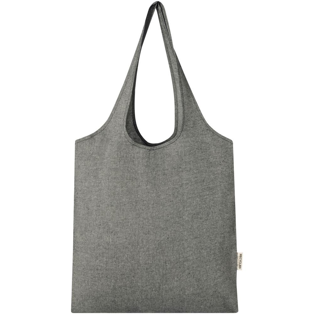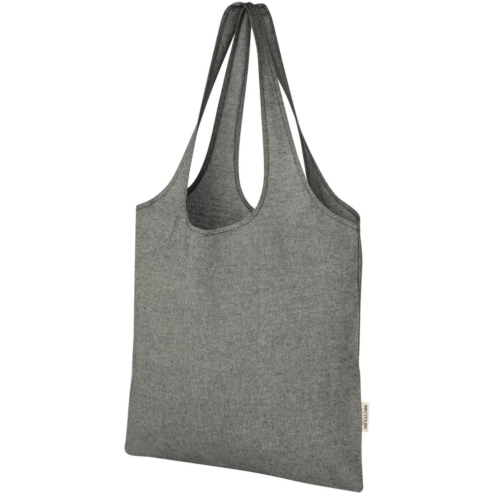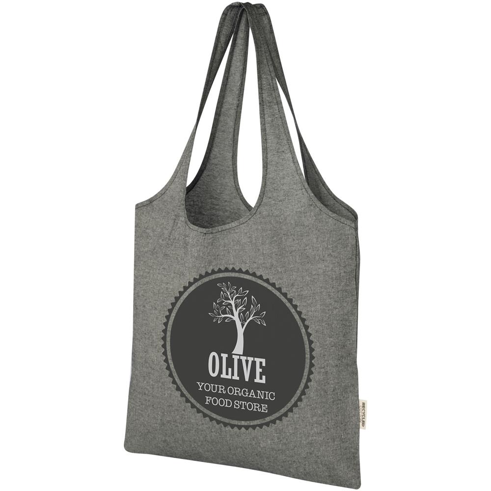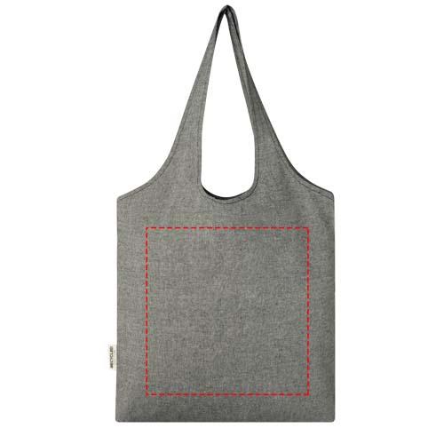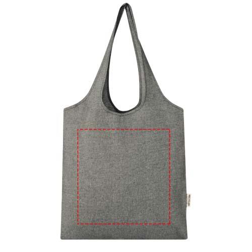 150 g/m² Einkaufstasche in trendigem Design mit offenem Hauptfach und 25cm langen Henkeln. Hergestellt aus recycelter Baumwolle und recyceltem Polyester. Vollständig wiederverwendbar, was sie zu einer großartigen Alternative zu Plastiktüten macht. Aufgrund des Produktionsprozesses kann es zu geringfügigen Farbabweichungen des Produktes kommen. Dieses Merkmal sorgt für ein authentischeres Aussehen. Belastbar bis zu 5 kg.