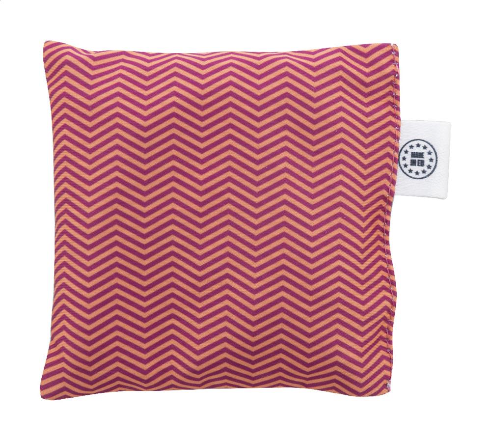 Individuelles Kirschkern-Wärmekissen in kompakter Größe, bezogen mit RPET-Mikrofaser, speziell für die Anwendung an den Ohren. Mit vollflächigem Sublimationsdruck. Mit RPET-Label. Mindestmenge: 50 Stk.