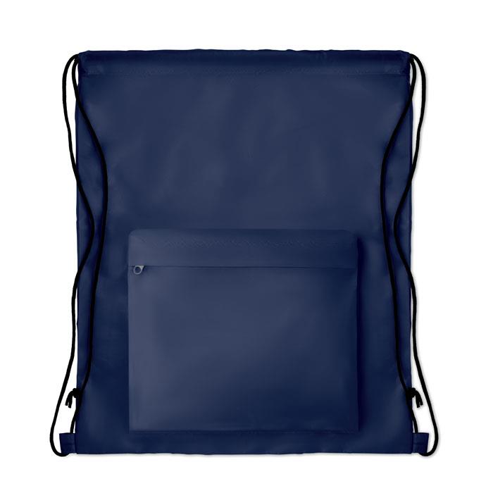 Großer Beutel / Rucksack mit Kordelzug und Reißverschlussfronttasche. 210D Polyester.