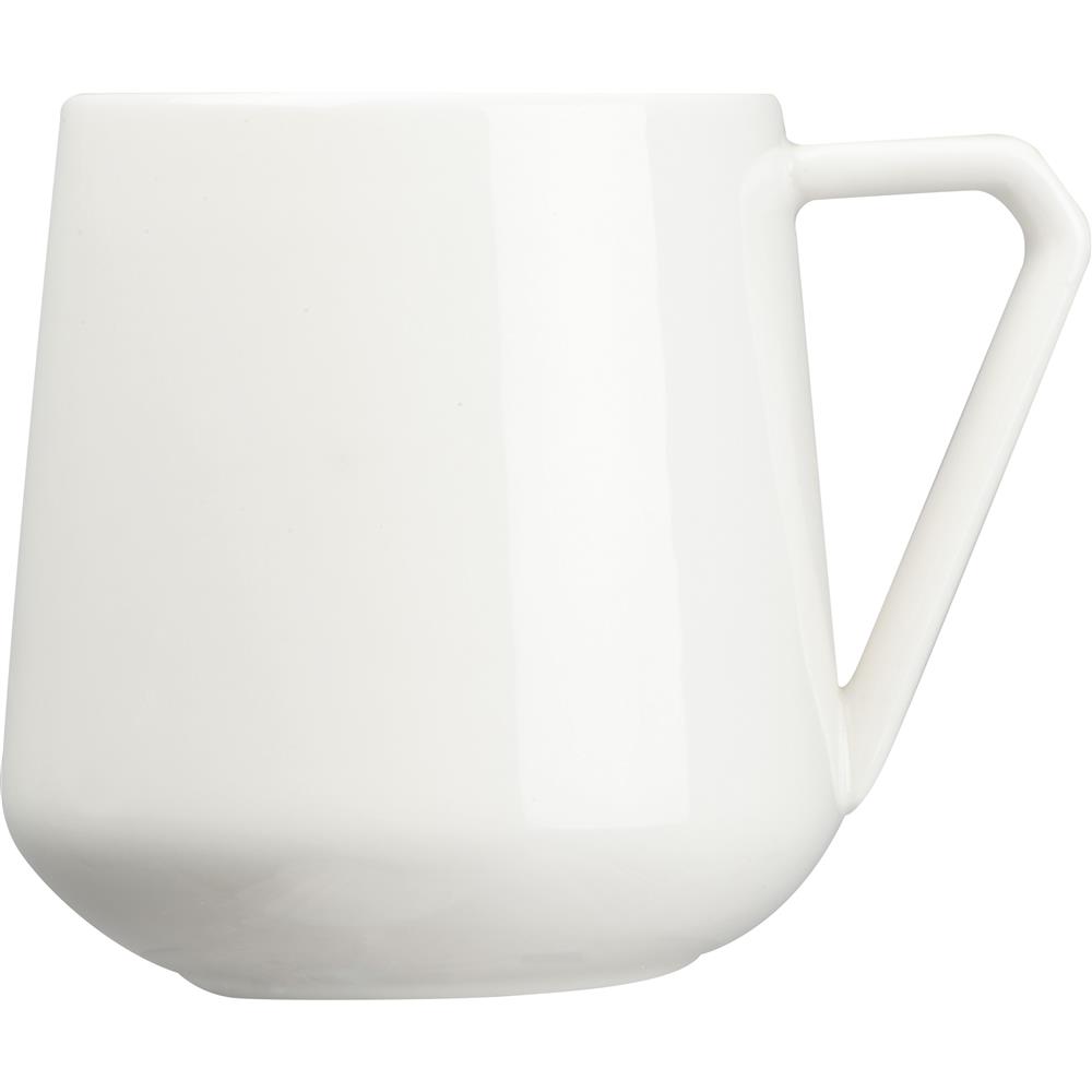 Porzellantasse mit einem Füllvermögen von 300ml und extravagantem Henkel. Ihre Werbung wird auf der Tasse angebracht.