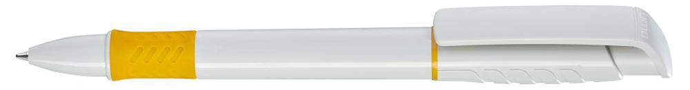 Druckkugelschreiber mit gedeckt glänzendem Gehäuse in weiß, Griffzone und Zierring unifarben bzw. komplett unifarben gedeckt glänzend schwarz. Ab 2.000 Stück kann das Modell farblich kombiniert werden.
