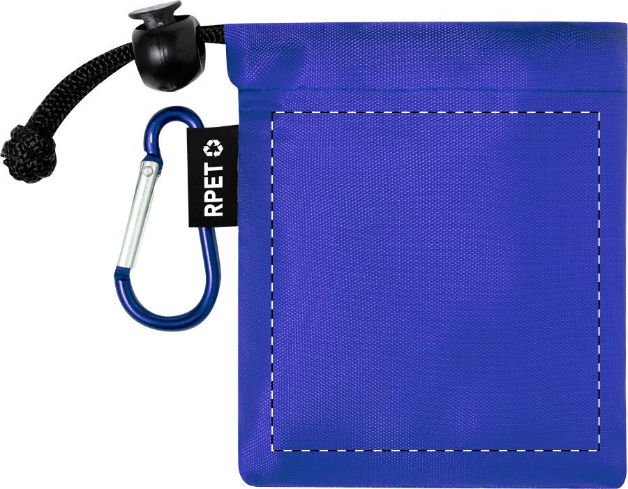 Transparenter Regenponcho für Kinder, verpackt im Beutel aus RPET Polyester (mit RPET-Label) mit Aluminium-Karabiner.