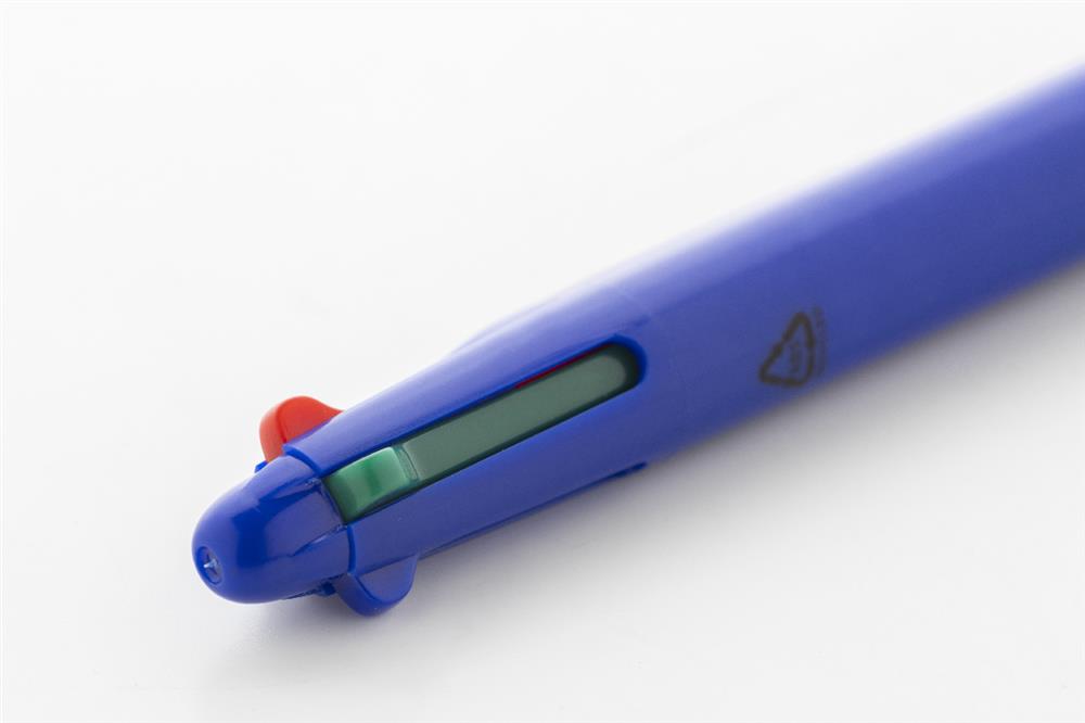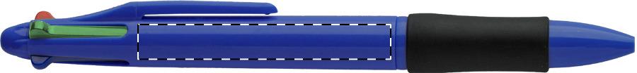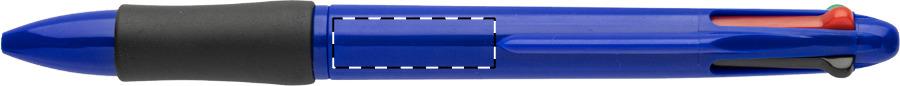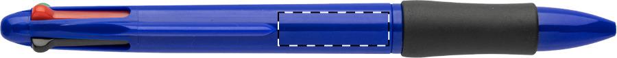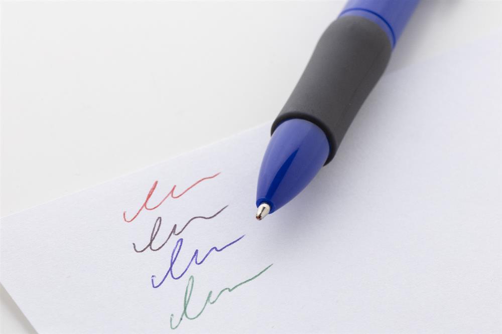 Vierfarbkugelschreiber aus recyceltem ABS mit Gummigriffzone. Minen schwarz-, blau-, rot- und grünschreibend.