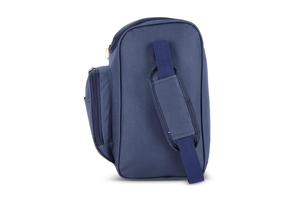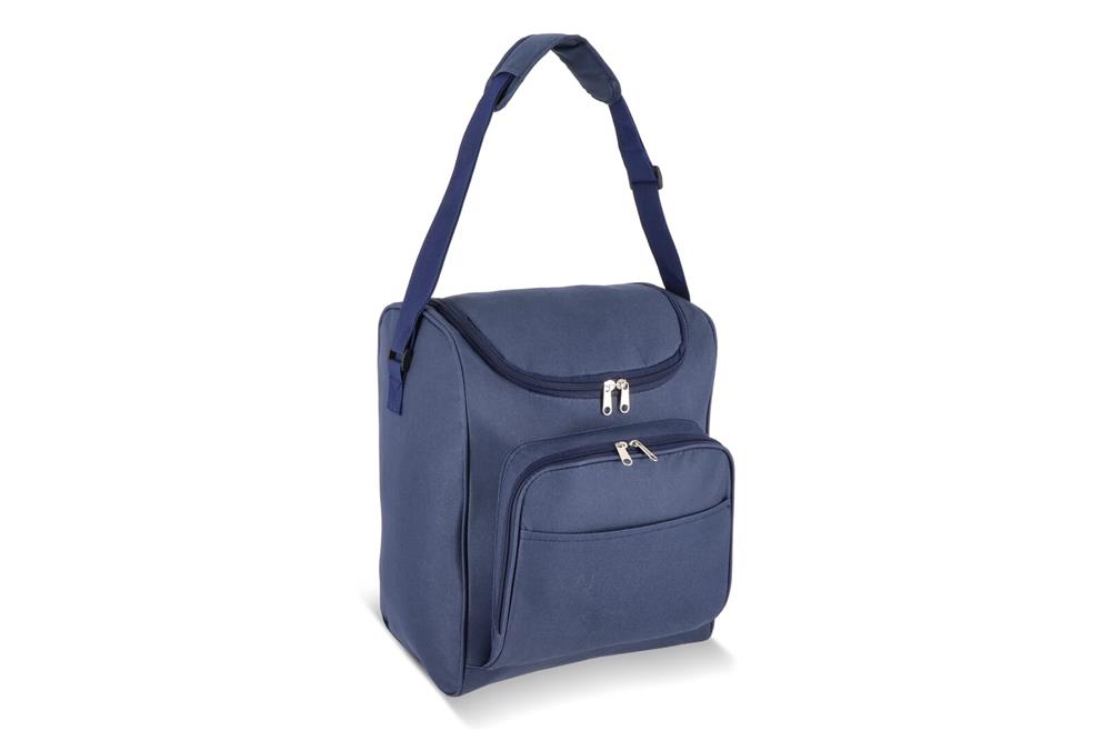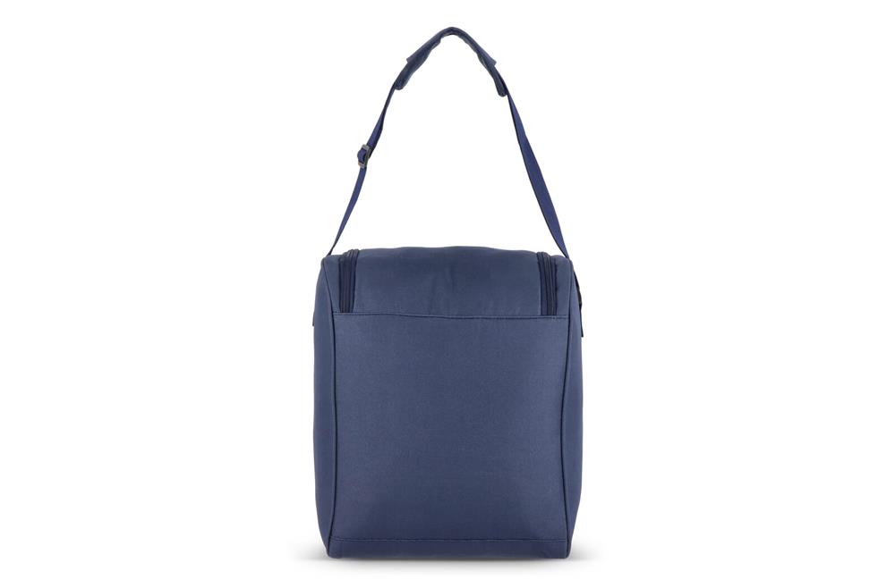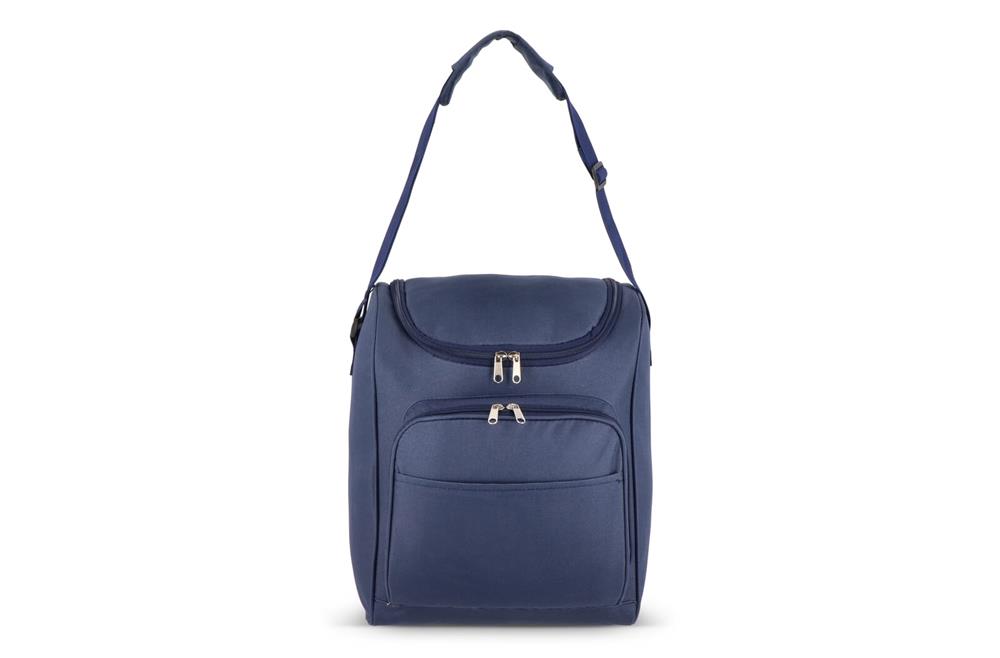 13-Liter-Kühltasche aus recyceltem PET 600D mit einer weiten Öffnung oben. Mit Aluminiumfolie gefüttert und einer Vordertasche mit Reißverschluss. Ideal für Getränkeflaschen, Picknicks und Einkäufe.