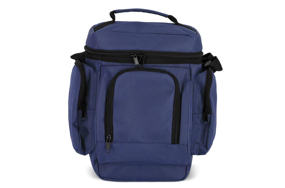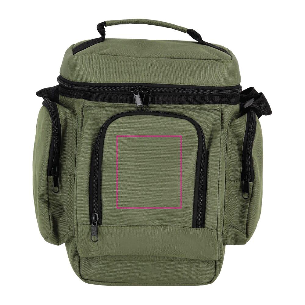 Diese Lunch-Kühltasche ist aus recyceltem PET in strapazierfähigem 600D-Material gefertigt und hat ein PEVA-Futter zur Isolierung. Sie hat zwei Seitentaschen mit Reißverschluss und eine Fronttasche mit Reißverschluss für zusätzlichen Stauraum. Der verstellbare Schultergurt und der obere Tragegriff erleichtern das Tragen.