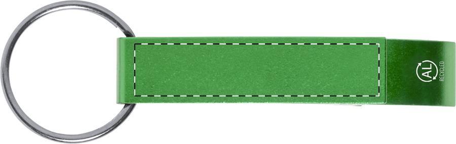 Flaschen- und Dosenöffner aus recyceltem Aluminium mit Schlüsselring aus Metall.