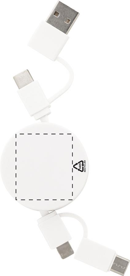 Teleskop-USB-Ladekabel aus recyceltem ABS mit Micro-USB-, USB-C- und Lightning-Anschlüssen. Mit USB- und USB-C-Eingängen.