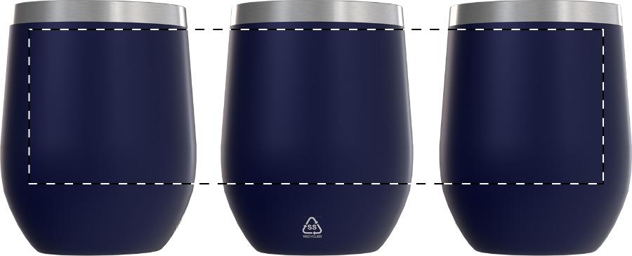 Doppelwandiger Thermobecher aus recyceltem Edelstahl mit Trinkdeckel aus Kunststoff. Füllmenge: 350 ml.
