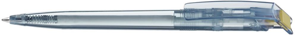Druckkugelschreiber aus recyceltem rPETMaterial in klar transparenten Gehäusefarben und gedeckten Stopfen. Die besondere Formgebung des Clipdrückers sorgt dafür, dass Ihre Werbung immer obenauf liegt. Das aus recycelten PET-Flaschen in Europa hergestellte rPET-Material eignet sich für einen langlebigen und nachhaltigen Werbeeinsatz. Dank der europäischen Produktion und dem Einsatz der langschreibenden uma Jumbomine, leistet der uma RECYCLED PET PEN einen zusätzlichen nachhaltigen Beitrag zur Schonung der Umwelt.