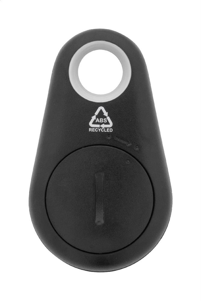 Kabelloser Schlüsselfinder mit Kameraauslöser im recycelten ABS-Gehäuse. Mit Metallring und Knopfzellenbatterie. Betrieb mit kostenloser iOS-/Android-App.