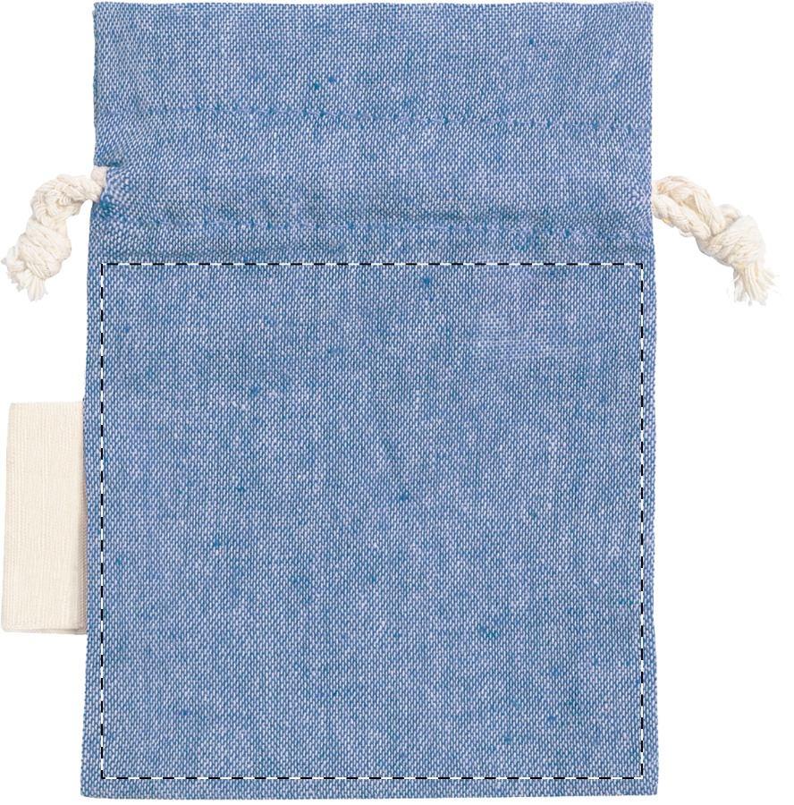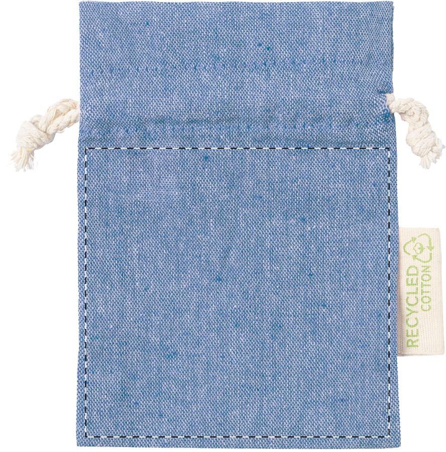 Geschenkbeutel aus recycelter Baumwolle mit Kordelzugverschluss. Mit Lable recycelte Baumwolle. Material: 100 % recycelte Baumwolle, 120 g/m².
